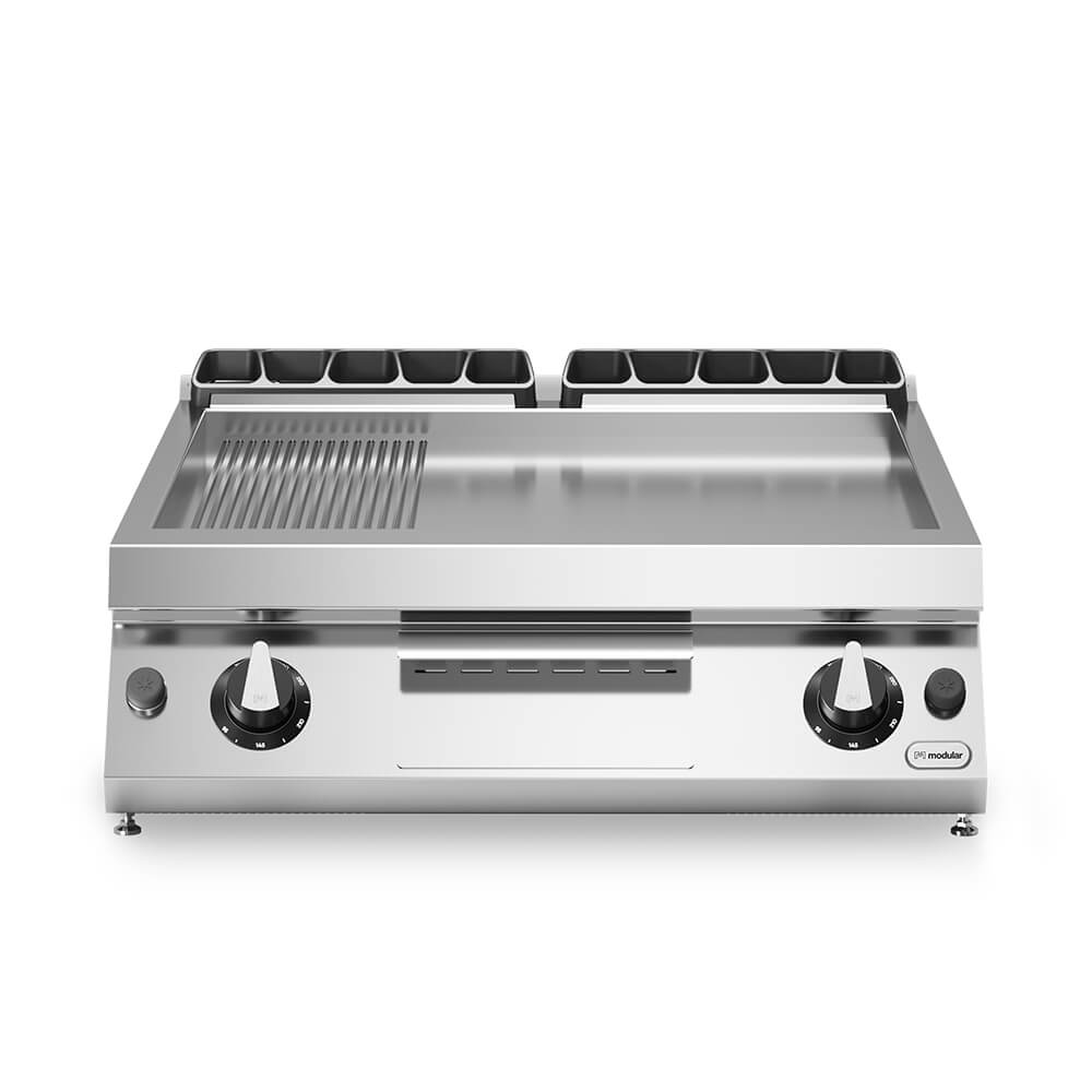 Εστία-πλατό αερίου 14kW διπλή 1/3 ραβδωτή 2/3 λεία επιφ. χρωμίου επιτραπ. R70/80FTG/CLR/T ROC700