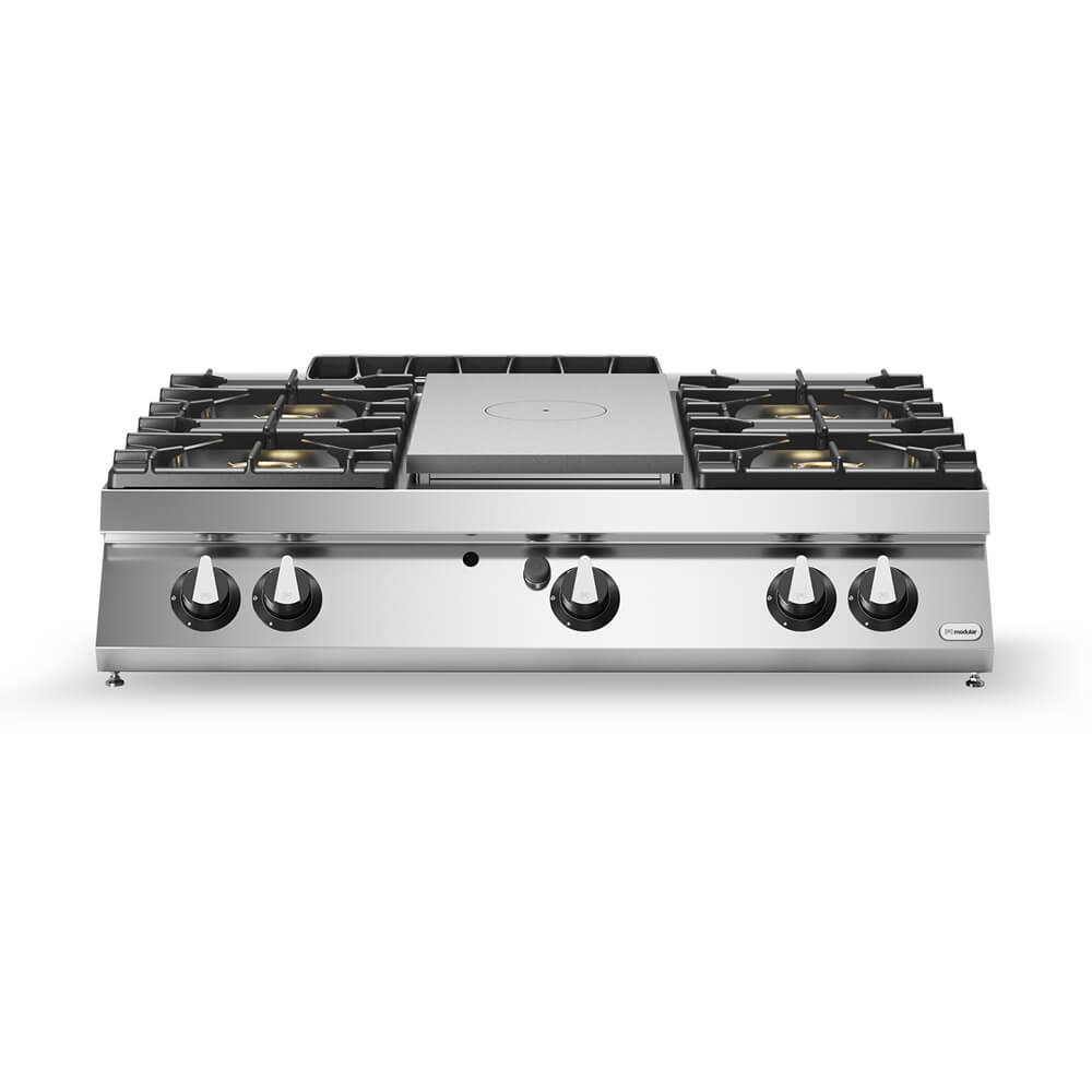 Solid top αερίου 7kW & 4 φλόγ. (2x5,5kW+2x7,5kW εμαγέ τάσια) επιτραπ. R90/120TPPGFB/T ROC900